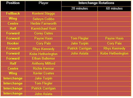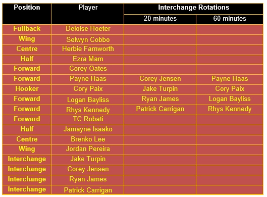 Based on the above analytical comparison, and with Willison, Reynolds and Nui recovering from injury, and Flegler suspended, the 17 players which comprise the Broncos’ most productive team for their Round 1 clash vs the South Sydney Rabbitohs would appear to be as follows: